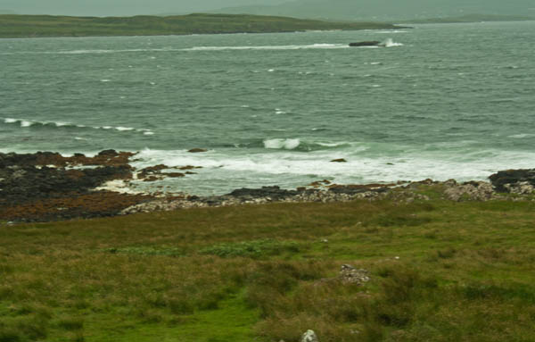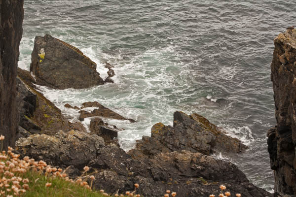 When we left there we headed up to the lighthouse at the Butt of Lewis. While we were up there, there was a bit of a flurry as a small pod of dolphins that kept surfacing, however briefly. I did manage to get one photo off of a dolphin’s dorsal fin but it turned out quite blurry. That said, the surrounding area with rugged coast was really quite beautiful.