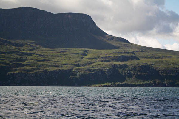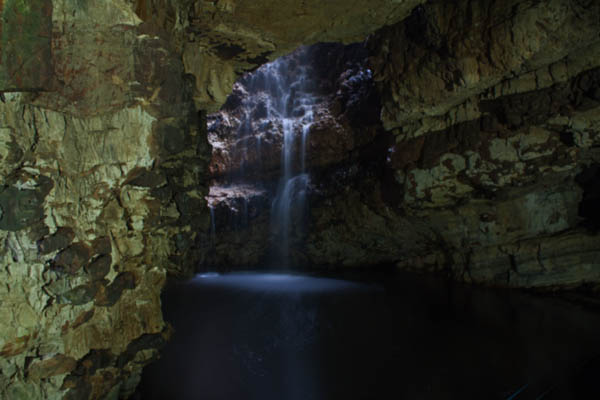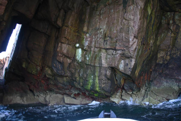 After this, we briefly doubled back a short distance to Smoo Cave, at the end of a 600m tidal gorge set into limestone cliffs, the waterfall inside drops in from a sinkhole. This is quite an interesting cave in that the initial part – further out into the gorge which collapsed due to erosion over the years – by the sea. The inner chambers of the cave, are formed by freshwater passages. There are three chambers to the cave – the first entrance into the cave is the outer chamber and a covered path leads towards the second chamber, where the waterfall empties into, and the furthest, the third chamber, is accessible by boat. The waterfall drops from an 25-metre (82ft) high point where the Allt Smoo falls through the sinkhole. I can still hardly believe that I got as good a shot of the waterfall as I did as it was quite dark in the cave. So what I did, since I didn’t have a tripod with me, was set the aperture and focus point with a long exposure, and the ISO level down to 100, and then put it on a 10-second timer and took the shot. I have to say, I’m extremely happy with how it turned out (fourth photo down, below).