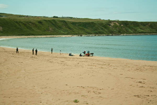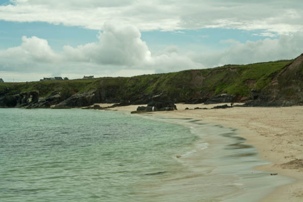 We left Ullapool in the morning on the ferry to head over to Stornoway on the Isle of Lewis. It was a two hour plus ferry run, so after writing up a few postcards, I put stuff away and curled up on the large cushions and fell asleep. When I woke, it was close to the time to head down to our Rabbie’s bus, so I gathered my backpack and camera bag and met up with the others in the lounge and headed down to the vehicle deck. Once in Stornoway, we got a brief run around to see where things were before parking at a bus terminal and getting out to explore a bit and grab some lunch. Afterwards we were back on the bus, heading west then north up to the Port of Ness. As we travelled along, we could see at various points along the flatter lands of Lewis, long strips out of the land where they were digging up peat to be dried out and then used as fuel. When we got to the Port of Ness, we stopped off at the beach there to the lovely soft sands; the water was turquoise with the underlying sand and shallow waters.