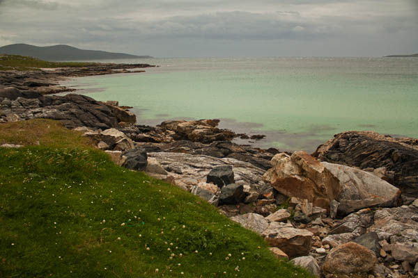 After a while, we headed up a little to have lunch at The Anchorage Restaurant in Leverburgh, over-looking a lovely bay. We then drove up the western coast of the lower end of Harris, heading back to the Port of Tarbert where we were to catch the ferry over to the Isle of Skye. Along the way we stopped at for a couple photo opportunities on the A859, overlooking gorgeous beaches with soft sands and shallow turquoise waters of the Atlantic Ocean.