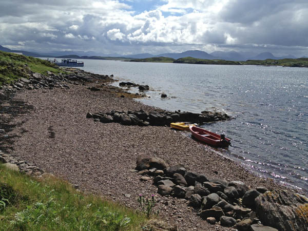 It was a quiet evening, I headed up the road a bit to a tourist shop to pick up a new umbrella – my other one got left somewhere – and then further up the road to the Ferry Boat Inn (FBI) pub for delicious supper and interesting chat up at the bar with a couple from Australia. When I got back, I went and got a shower and ready for the night, so that I wouldn’t have to cue for the showers in the morning. Got my devices charged up and headed to bed. I was joining the Outer Hebrides Tour in the morning.