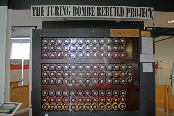 Inside Block B contains the largest collection of Enigma machines on public display. It also contains a large section on the contributions of Alan Turing to Bletchley Park and to the history of modern computer programming. During WWII, Turing worked for the Government Code and Cypher School (GC&CS) at Bletchley. The display includes old diaries, an old teddy bear, a detailed history of his accomplishments and his posthumous pardon, and an artfully sculpted slate statue of Alan Turing done by Stephen Kettle.