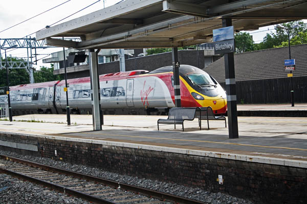 As we were leaving the Museum for the day, I was endlessly fascinated by the whole visit, but there was so much information to take in that I knew I wouldn’t remember it all, without reference to look back on. We headed back to the train station to wait for our train, which due to troubles on the line north of where our station was, we were delayed about an hour and a bit. Occasionally we’d just sit and wait as the Virgin Rail high speed trains went whizzing by (going from London to Manchester). We nicknamed it ‘The Virgin Bullet’. The first shot I took was a big blur, but putting it over to the automatic setting for Action, I did get a good shot of the train as it went through the station stop: