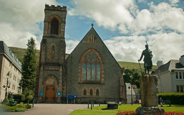 Before we left, I went into the gift shop to pick up a few things (music, a t-shirt, some postcards and stamps), and just as we were leaving, there was a little sprinkle of rain coming down, but it didn’t last too long as we moved further south-east and stopped in Fort William for a lunch break. Several of us went together to a pub that had some really good food before meeting up again in The Parade area in front of the Duncansburgh MacIntosh Parish of the Church of Scotland.