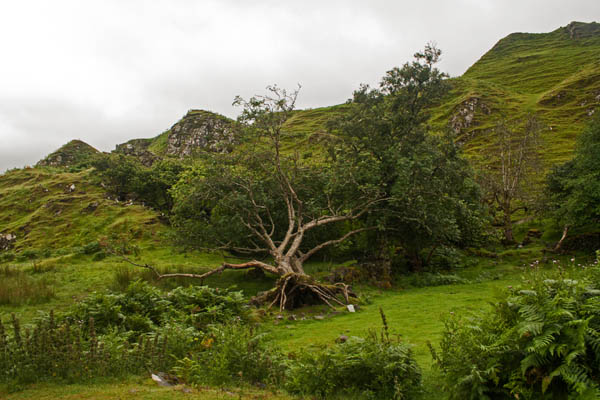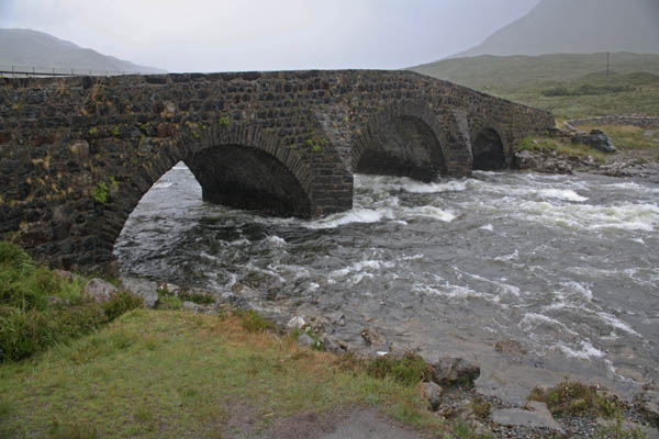 We drove on a little longer through Dunvegan and down through and stopped off at the Sligachan Hotel and headed over to the Sligachan Bridge, with the river heavy with rain rushing through the arches. The nearby Cuillin mountains nearby provided a lovely backdrop. I wish it hadn’t started raining but there was some wonderful shots to be taken. According to legend, the Cuillin take their name from the Gaelic hero, Cúchulainn, although this is probably a folk etymology. Legend has it that Cúchulainn learned martial arts from the warrior woman, Scáthach, who was said to have a fighting school in Skye. She bested him in a fight and so after learning from her, he challenged her once more to a fight and won. (ref. Tour guide’s local knowledge, along with Wikipedia reference and– The Cuillin History & the Peak Names