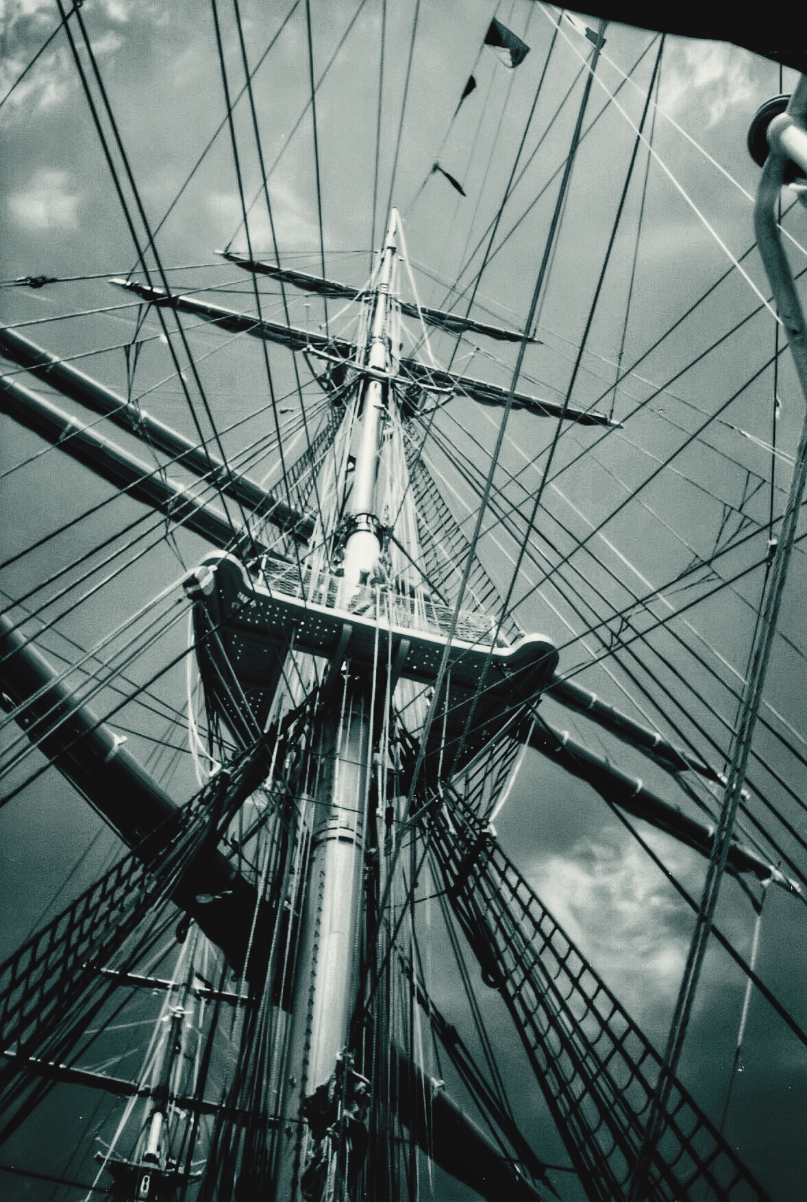 This is the same base photograph. The one on the right had no post-processing editing done, while the one on the left was edited with Snapseed, then a further filter was applied within the EyeEm iOS app to show up the high contrast and bring out the detail in the lines and cables on the tall ship mast.